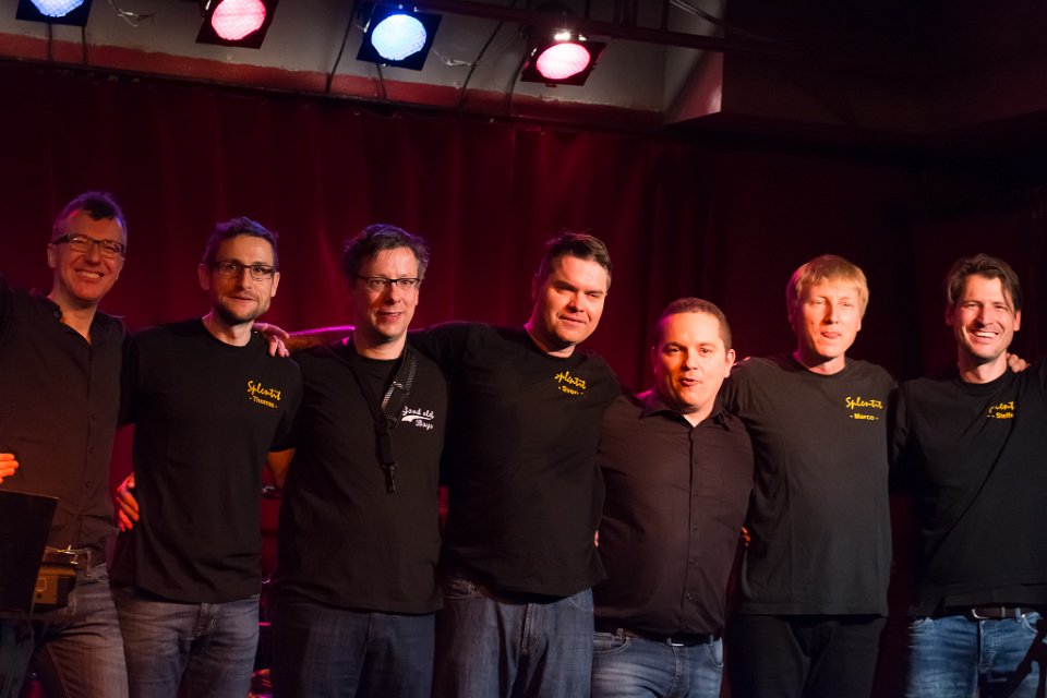 Im Hintergrund supporten ihn seine Freunde Steffen (git), Jochen (b), Marco (dr), Volker (sax), Thomas (tp) und Andi (tb) mit außergewöhnlicher Spielfreude.